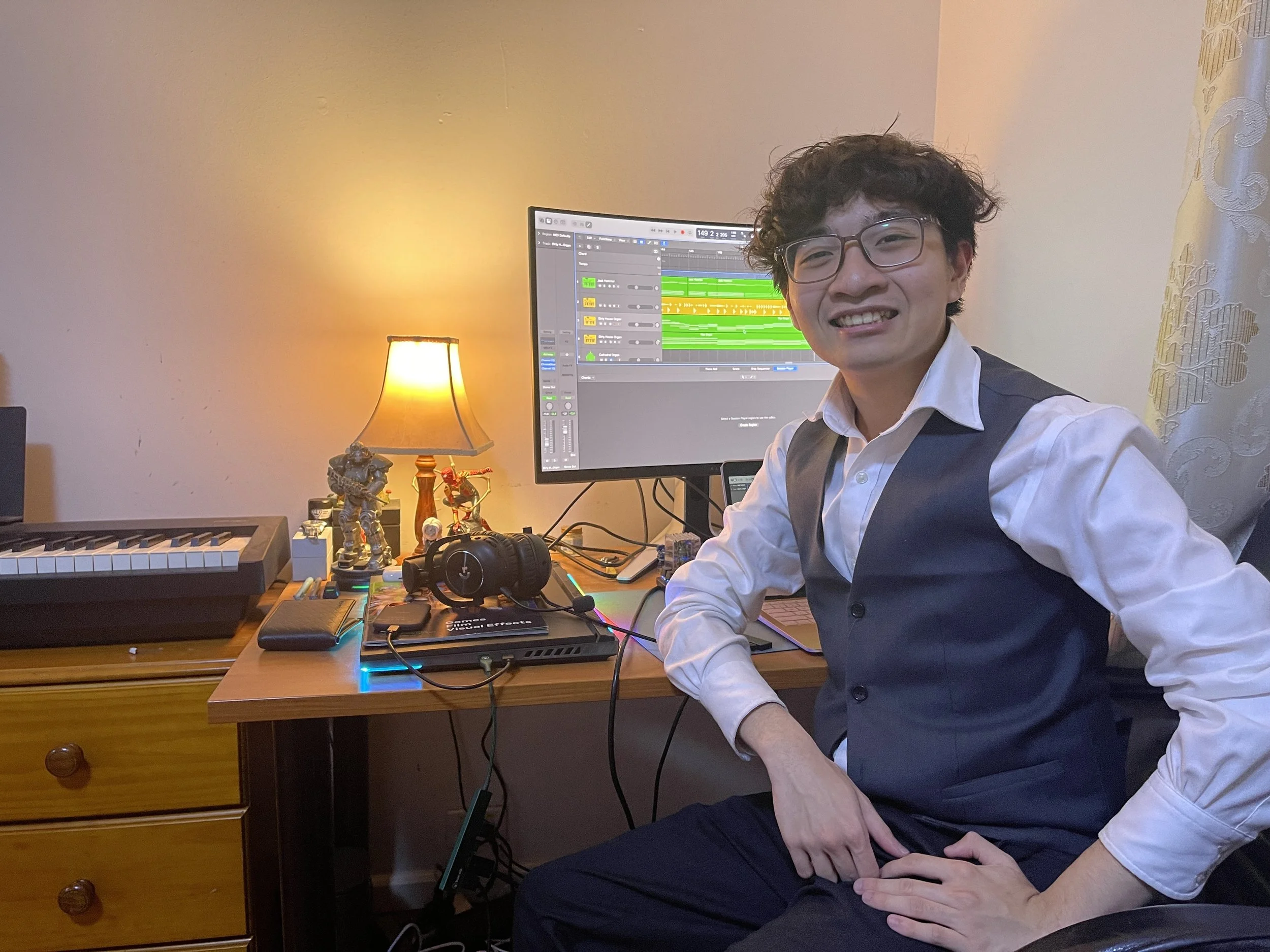 Quan is an aspiring composer with a strong interest in creating video game soundtracks. He had developed a great interest in video games and classical music when he was young. His musical journey began with piano lessons in high school, though he only began to consider music as a serious career during his time in college. Inspired by his music tutor, Nicolas Beecher, and driven by a lifelong passion for video games and their soundtracks, Quan set his sights on becoming a video game composer.